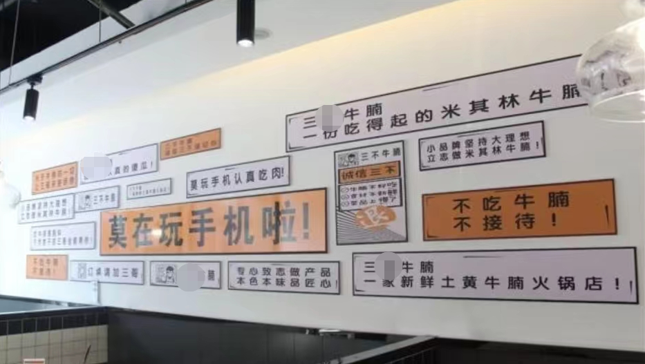比如巴奴,當(dāng)初那句“服務(wù)不是巴奴的特色,毛肚和菌湯才是”,直到現(xiàn)在還讓人津津樂道,他和小放牛區(qū)別就是,沒把話說盡,讓消費者自己補充短語,達到意會效果。
