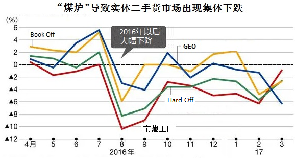 “煤爐”在2013年發(fā)跡伊始,就顛覆了以往日本網(wǎng)絡(luò)二手交易徘徊不前的歷史,經(jīng)歷2014年大規(guī)模的廣告轟炸,2014年9月12日在美國展開業(yè)務(wù),2015年引發(fā)高速增長,平臺交易達到653億日元?腿航Y(jié)構(gòu)中50%以上是20至30歲青春女性,而且服裝飾品交易數(shù)量比例占到40%。從2016年下半年以后,所有經(jīng)營二手貨的實體店都感受到“煤爐”沖擊壓力,業(yè)績集體下跌。