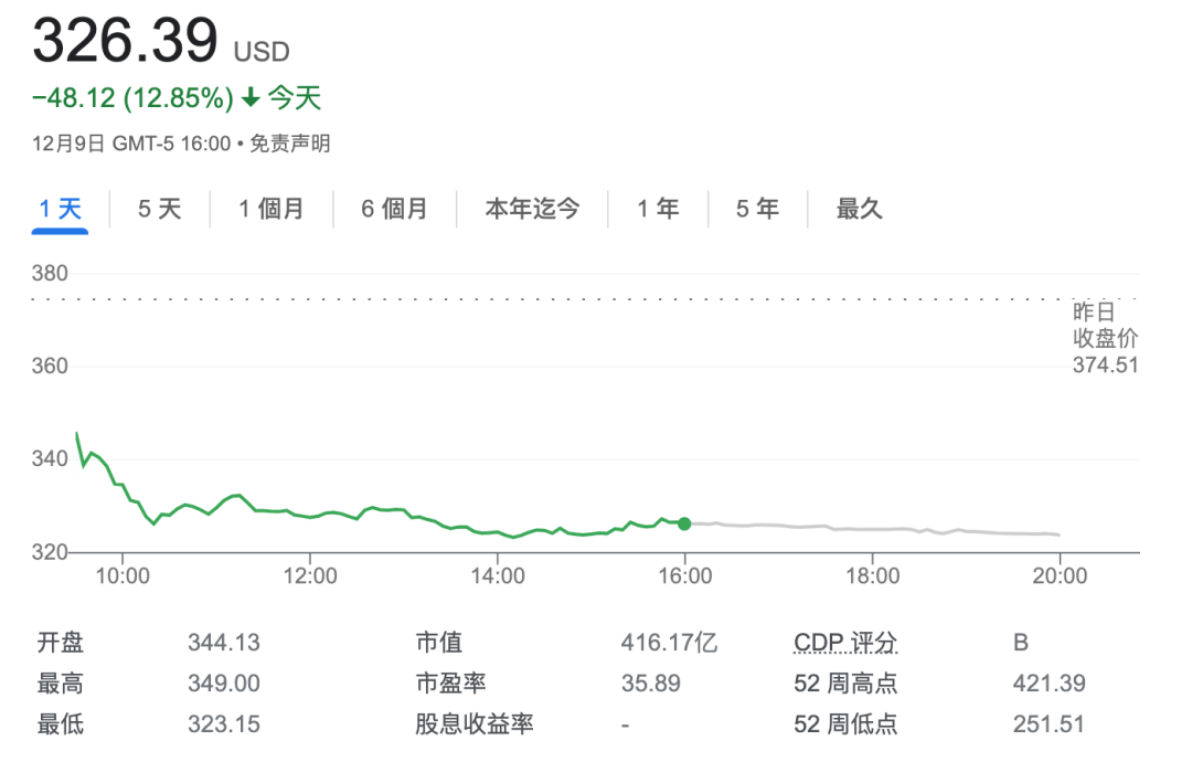 12月9日,Lululemon(LULU.NASDAQ)公布2022財年第三財季業(yè)績后,股價下跌12.85%,創(chuàng)下了自2020年3月以來疫情爆發(fā)后的最大跌幅,股價跌至326.39美元。