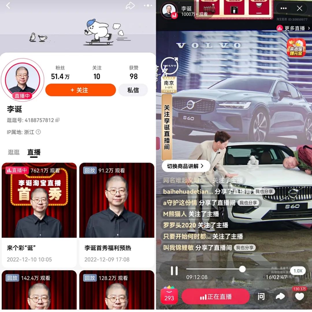 左:12月10日首播當(dāng)晚21:00左右 右:李誕講解沃爾沃S60