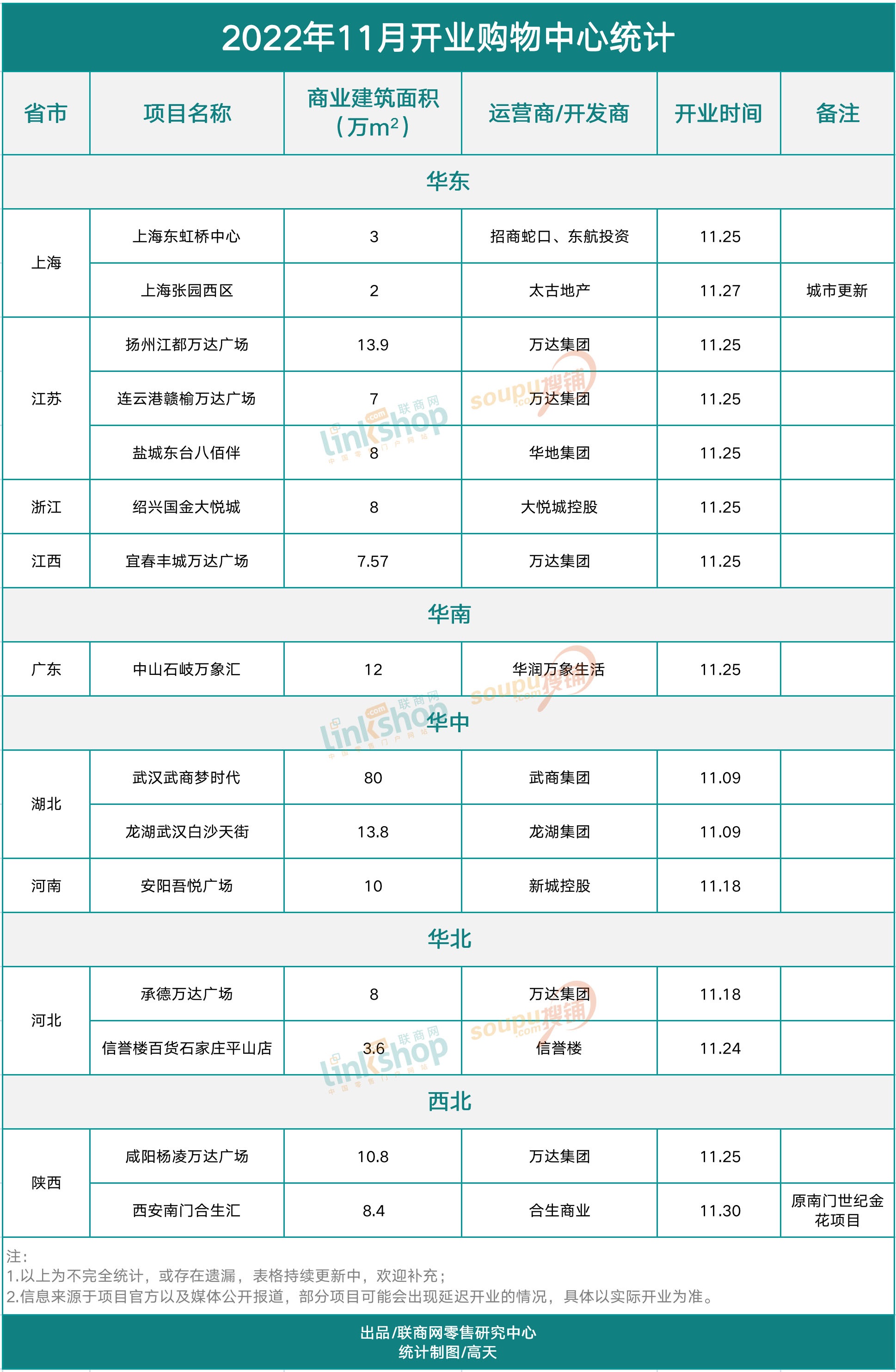可以看出,雖然11月開(kāi)業(yè)數(shù)量不多,但項(xiàng)目的“含金量”還是很高。