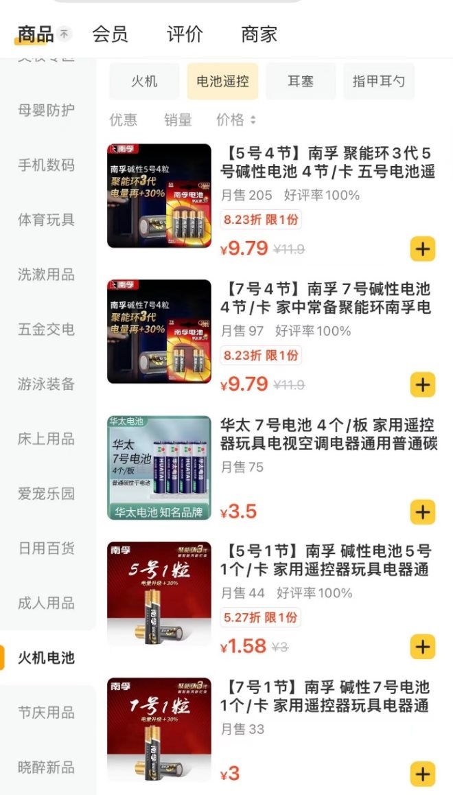 “像電池、打火機這類平時看著不起眼,要起來特別急的商品,日常都賣得很好。”北京朝陽區(qū)一家主做線上外賣生意的便民超市店主表示,店鋪上線外賣后,在日用百貨、休閑零食、廚房調(diào)料、果蔬生鮮等常用分類外,還特別設置了一個“火機電池”的分類,“同行很多也會設置類似的分類,方便消費者選購!
