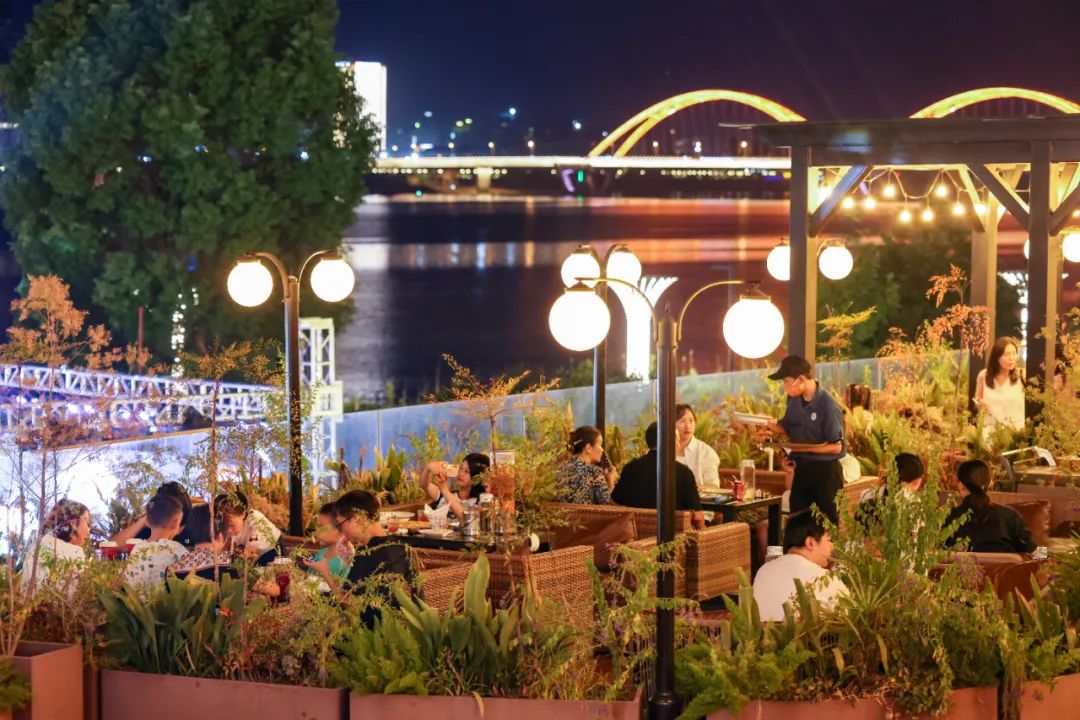 悅酌「江畔青年治愈場(chǎng)」則更符合星城長(zhǎng)沙人的“娛樂生活態(tài)度”,270°江景露臺(tái)餐酒吧匯集了18號(hào)酒館、TSINGTAO1903青島酒館、Commune、暖菲酒廊等當(dāng)紅“小酒館”,再加上火爆魔都的沉浸式環(huán)境戲劇阿波羅尼亞、精品咖啡、中式茶飲等業(yè)態(tài),讓 悅酌「江畔青年治愈場(chǎng)」成為長(zhǎng)沙夜經(jīng)濟(jì)實(shí)力展現(xiàn)的標(biāo)志區(qū)域。