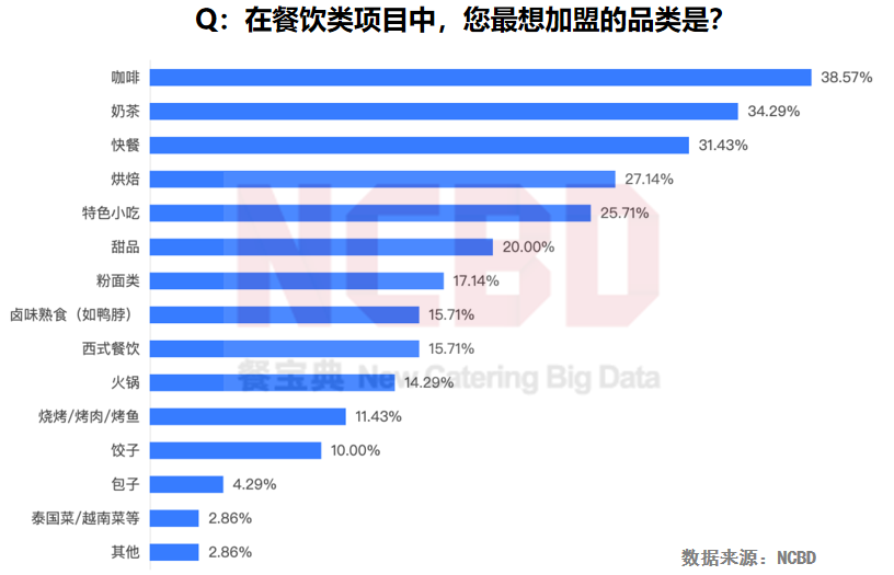 而且快餐天然適合放加盟。NCBD(餐寶典)的《2022—2023中國餐飲加盟創(chuàng)業(yè)者調研報告》顯示,快餐位列最受創(chuàng)業(yè)者喜歡的餐飲品類第三名。