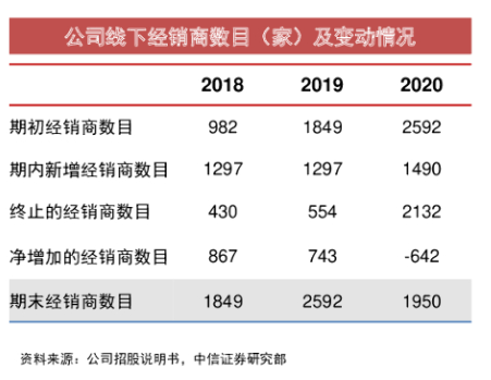 當(dāng)然,最影響衛(wèi)龍效益的還是經(jīng)銷商的出走。根據(jù)招股書顯示,從2019年至今年上半年,衛(wèi)龍的經(jīng)銷商數(shù)量,從2592家降至1832家。