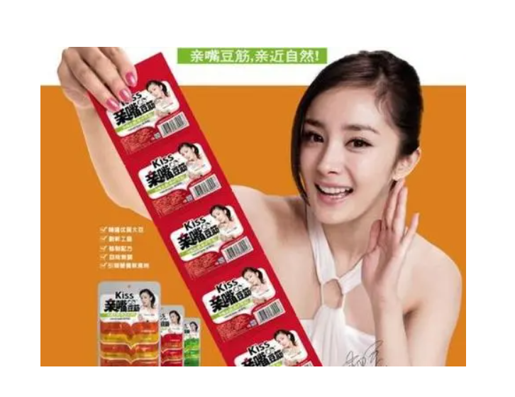 為了持久的綁定高端,2010年衛(wèi)龍請(qǐng)來了趙薇代言衛(wèi)龍經(jīng)典辣條系列。2012年,衛(wèi)龍力邀楊冪代言“親嘴燒”“親嘴豆干”等系列產(chǎn)品。這一波明星加持的營(yíng)銷,讓衛(wèi)龍徹底破圈,獲得了足夠多的熱度以及銷量。