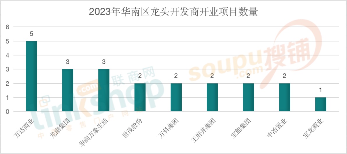 其他,世茂股份、萬(wàn)科集團(tuán)、王府井集團(tuán)、寶能集團(tuán)、中冶置業(yè)等知名企業(yè)2023年在華南區(qū)均有項(xiàng)目開(kāi)出。