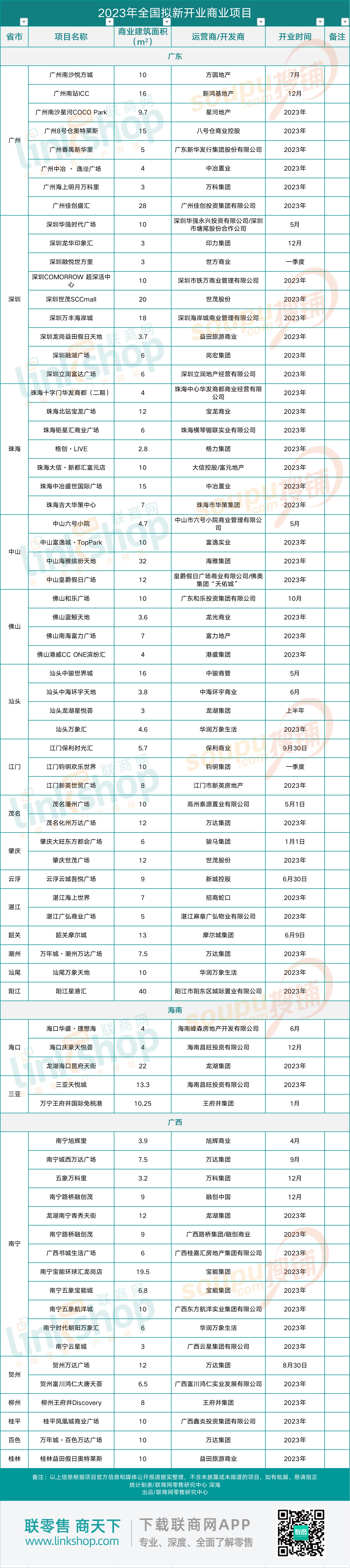 華南地區(qū)2023年計(jì)劃新開(kāi)商業(yè)項(xiàng)目名單曝光