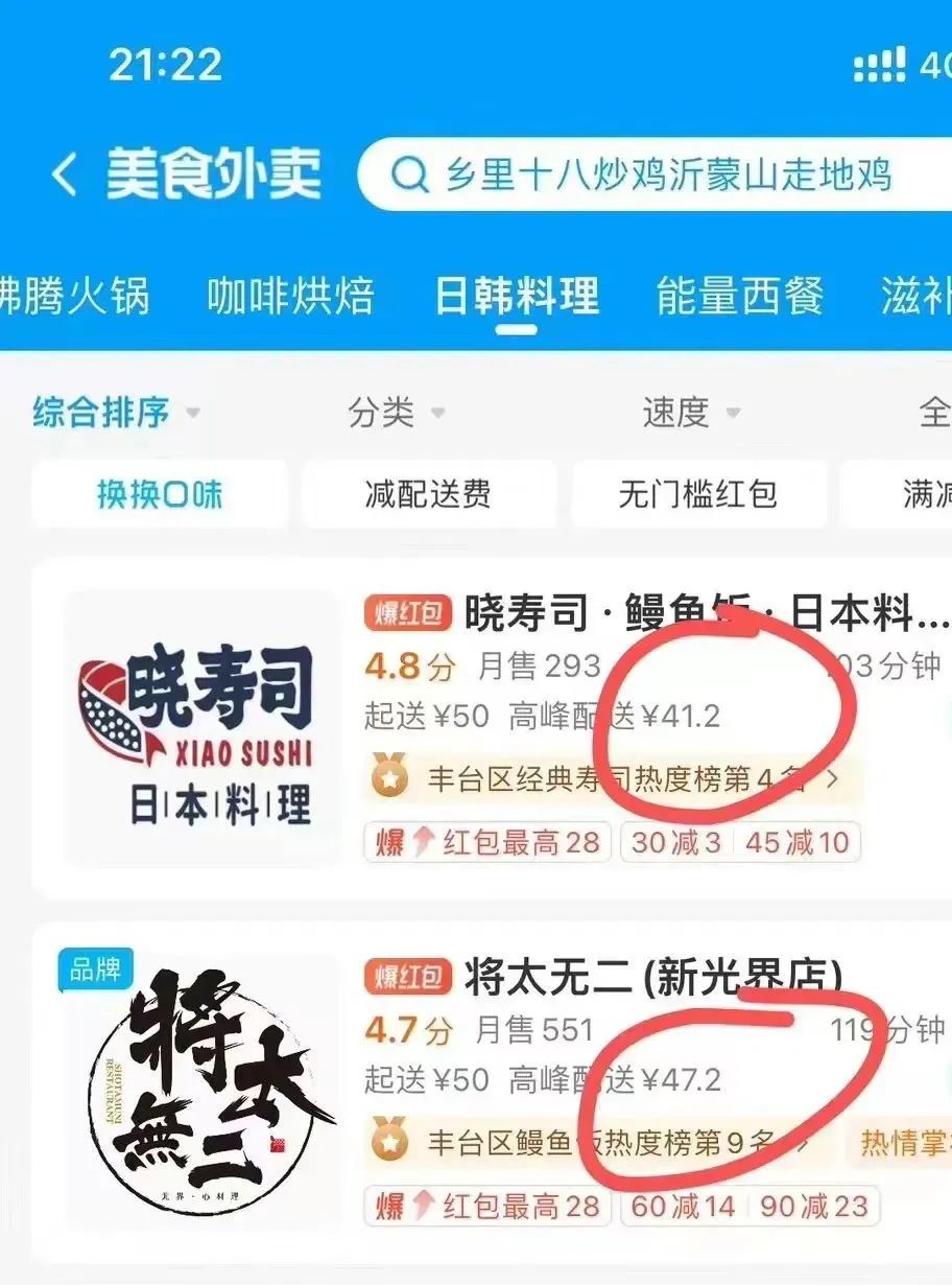 配送員稀缺,也讓配送費(fèi)價(jià)格上漲,有的門店配送費(fèi)一度飆升到40元以上,也將一部分顧客拒之門外。