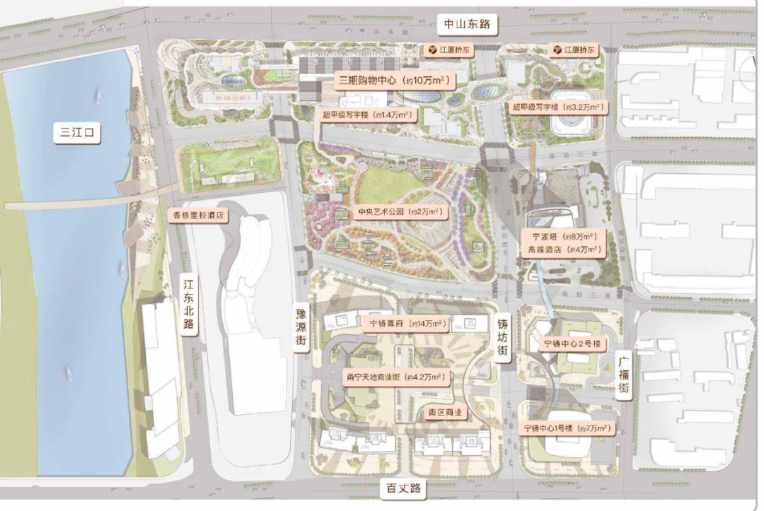 寧波新世界由12個地塊組成,總體量共85萬方,涵蓋了頂奢豪宅、超甲級辦公集群、國際品牌酒店、10萬方的購物藝術(shù)中心、2萬方的中央藝術(shù)公園和4.2萬方特色商業(yè)街等全系高端業(yè)態(tài),形成了一站式商務(wù)休閑生態(tài)圈。