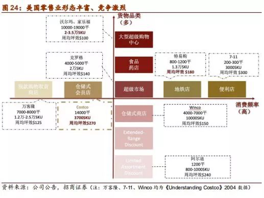 周均坪效大約在270美元。遙遙領(lǐng)先于沃爾瑪和家樂(lè)福的100美元的周均坪效。