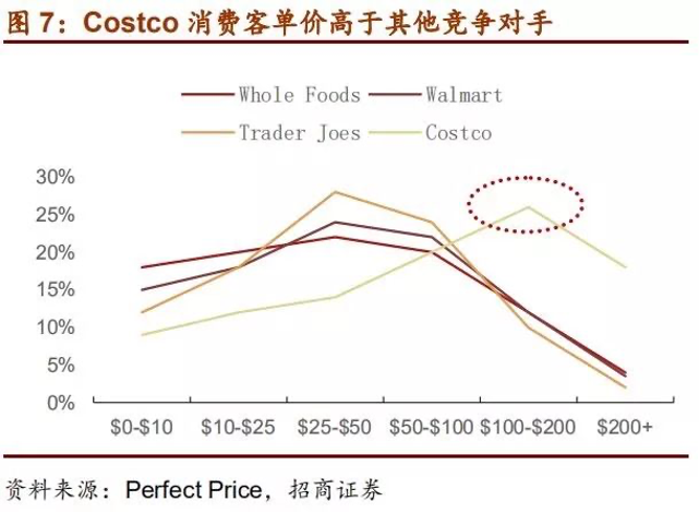 單程人均消費(fèi)額136美元,并且25%的消費(fèi)人群客單價(jià)在100-200美元之間。遠(yuǎn)遠(yuǎn)超過(guò)沃爾瑪、Whole Foods等。
