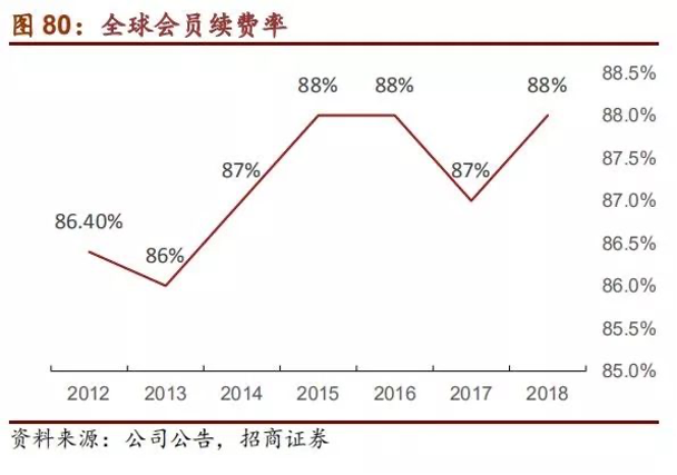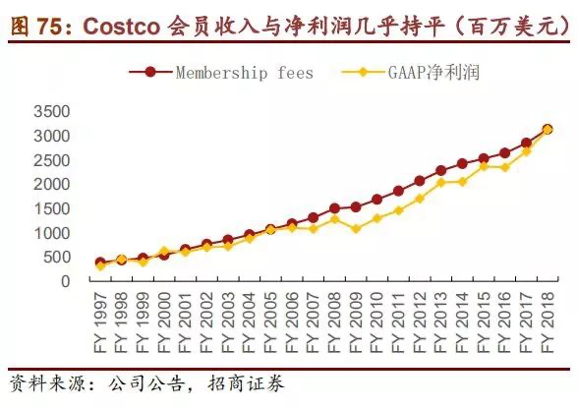 2018年會(huì)員收入為31.42億美元,而凈利潤(rùn)為31.34億美元,根據(jù)年報(bào)數(shù)據(jù)顯示,會(huì)員收入幾乎直接貢獻(xiàn)凈利潤(rùn)。
