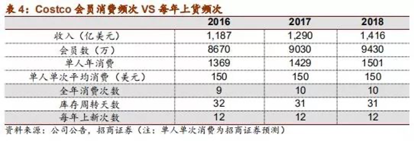 Costco會(huì)員全年消費(fèi)次數(shù)與上貨頻率接近。