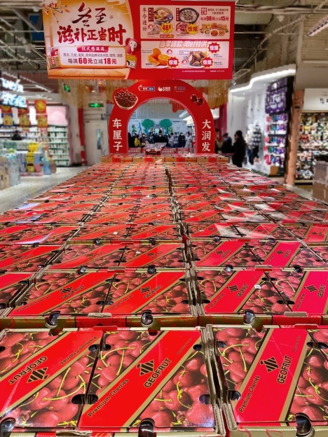 大潤(rùn)發(fā)上海楊浦店智利車(chē)?yán)遄由鲜惺装l(fā)熱賣(mài)現(xiàn)場(chǎng)