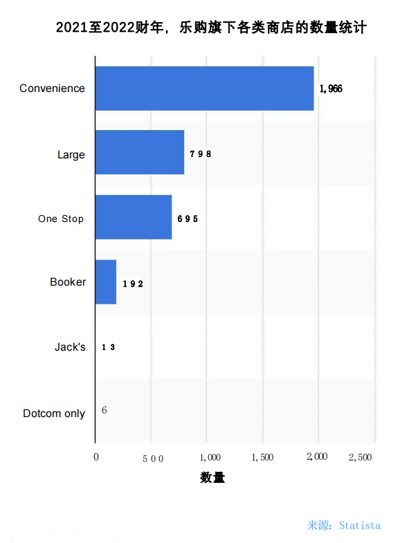 樂(lè)購(gòu)(TESCO)在英國(guó)和愛(ài)爾蘭共和國(guó)共設(shè)有4008家門店,在全世界范圍內(nèi)擁有的直營(yíng)店和特許經(jīng)營(yíng)店總共超過(guò)7005家。在歐洲,樂(lè)購(gòu)還分布于匈牙利、斯洛伐克、捷克共和國(guó)、波蘭和土耳其。在亞洲,樂(lè)購(gòu)在泰國(guó)、韓國(guó)、馬來(lái)西亞、日本和中國(guó)均設(shè)有門店。