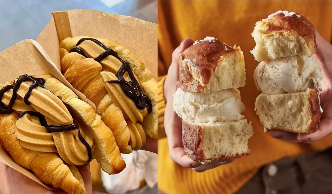 冰淇淋和烘焙之間的組合遠(yuǎn)不止泡芙,隨處可見(jiàn)的面包也能融合得恰到好處。麥當(dāng)勞中國(guó)的心動(dòng)角就是其中的一種,選用牛角包搭配冰淇淋,兩者的中和賦予面包更豐富的滋味,并且有原味、抹茶味、巧克力味、曲奇味多種選擇。