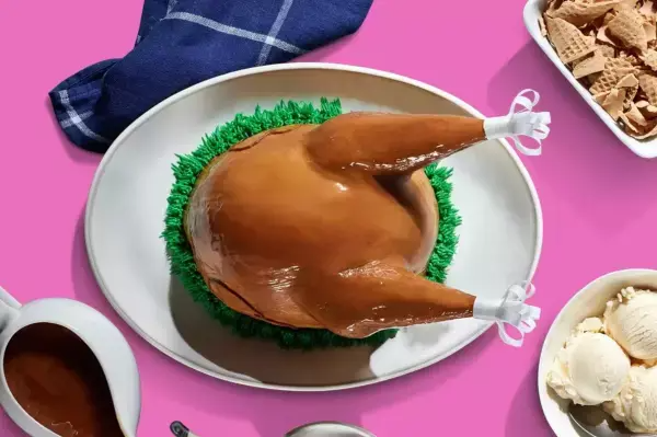 在國(guó)外,冰淇淋常常充當(dāng)著飯后甜品的角色,同時(shí)也是餐桌上的裝飾品。在意義非凡的感恩節(jié),Baskin Robbins的火雞造型冰淇淋限時(shí)回歸,整個(gè)冰淇淋的外層涂上了果仁糖釉,讓“火雞”呈現(xiàn)出閃亮的棕色,頂部還搭配了兩個(gè)用糖做成的大雞腿。每個(gè)火雞冰淇淋蛋糕都可以分出12-16份冰淇淋,為節(jié)日餐桌增加一點(diǎn)不一樣元素。