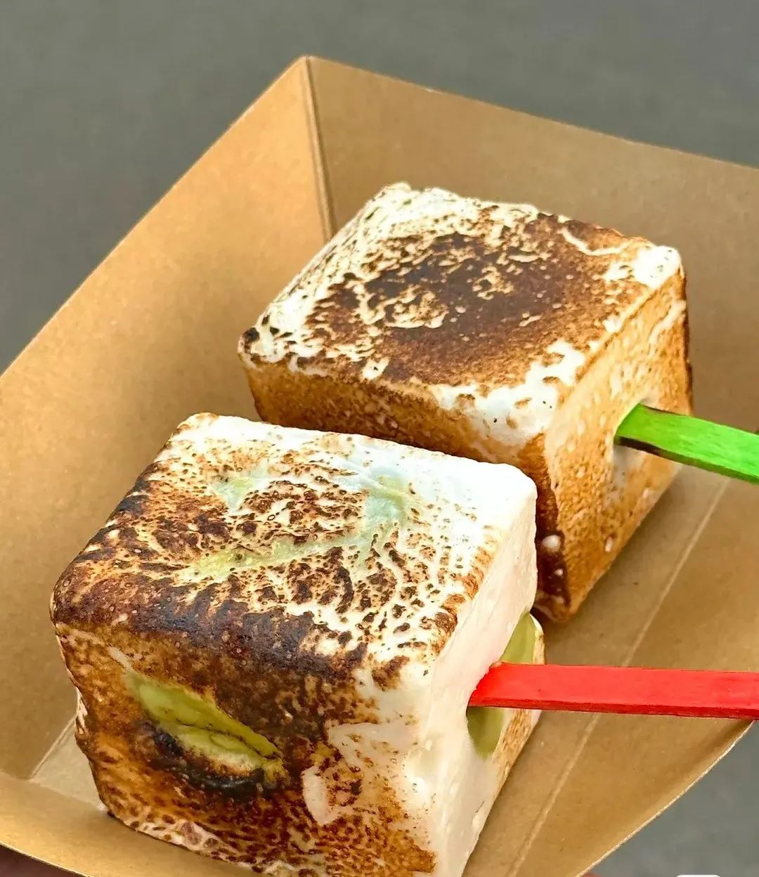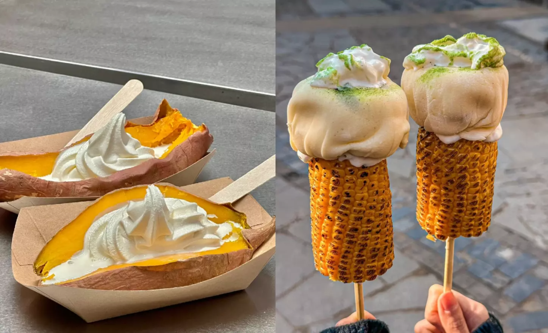 不同于和餐飲搭配的暗黑風(fēng),冰淇淋和小吃組合的高顏值總會(huì)成為社交平臺(tái)上的熱門話題,MUJI新出的烤紅薯冰淇淋,在小紅書(shū)搜索同類商品會(huì)出現(xiàn)1萬(wàn)+篇筆記,從去年到今年,這一話題熱度不減。同樣是街頭小吃,東北地區(qū)的烤苞米冰淇淋也是“鐵漢柔情”。