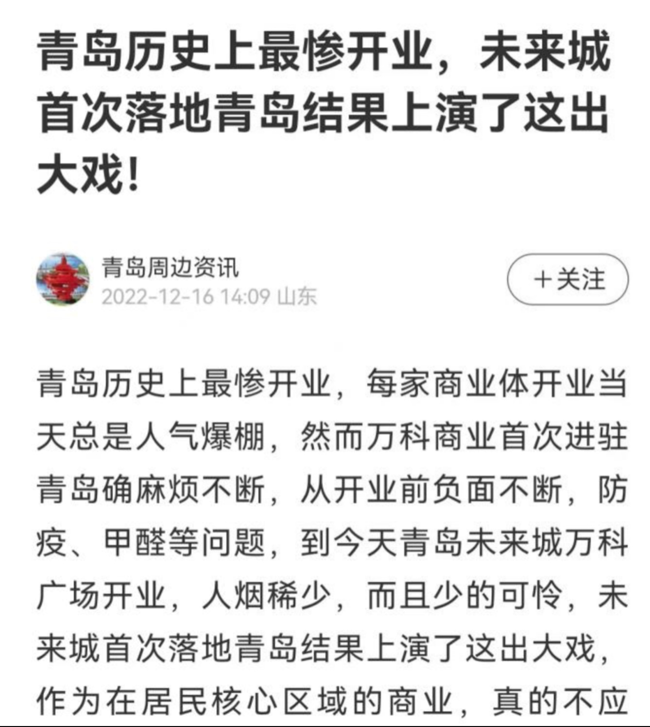 探店青島萬(wàn)科未來(lái)廣場(chǎng):青島史上最慘開(kāi)業(yè)?言過(guò)其實(shí)