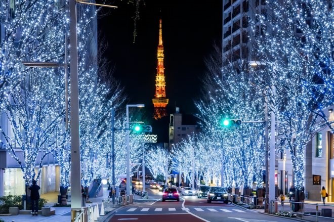 #SNOW&BLUE櫸樹坂燈光秀:在通往六本木新城的路上,有一段400米的主干道,該路段上的所有樹木全部披上了華麗的外衣,會以特色燈光秀的形式給大家營造夢幻般的場景。