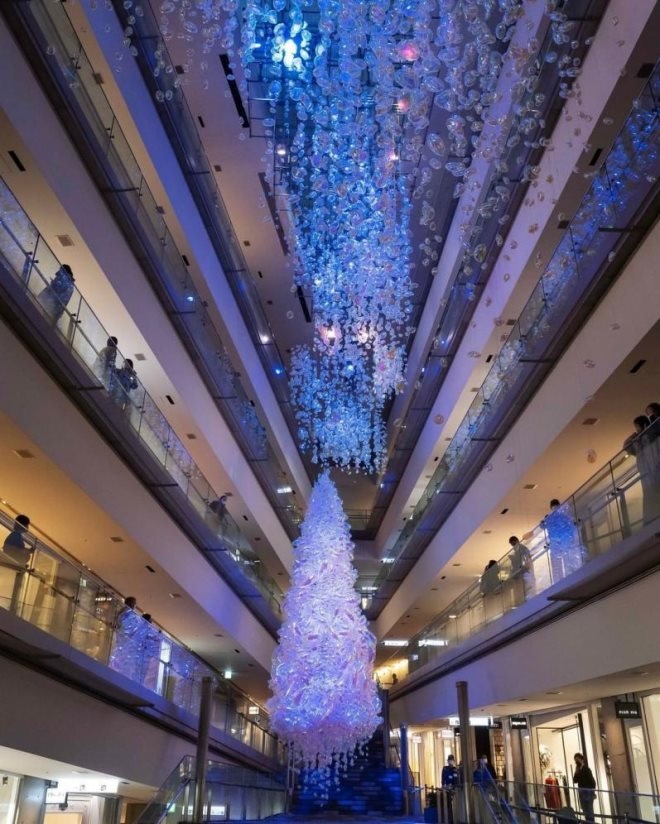 主題:#Floating Balloon Tree of Light,漂浮的光之氣球樹,這個特殊的圣誕樹使用了約1.4萬個手工制作的氣球,組成高達9米的圣誕樹,在燈光的映射下閃閃發(fā)光。