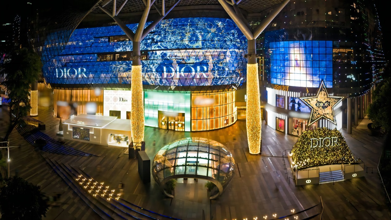 這是亞洲最大的Dior Star,該建筑高 15 米,位于購物中心L1 入口的室外空間,視覺上令人驚嘆,其周圍有超過 2萬個燈泡映襯。