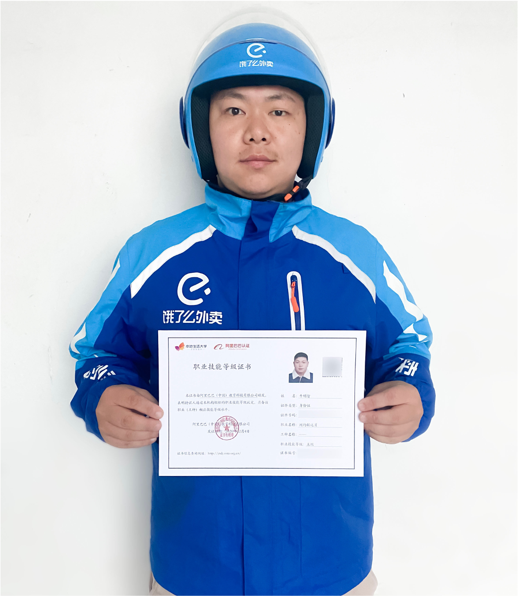 ▲牛明智還是全國(guó)首批獲得“網(wǎng)約配送員”認(rèn)證的騎手
