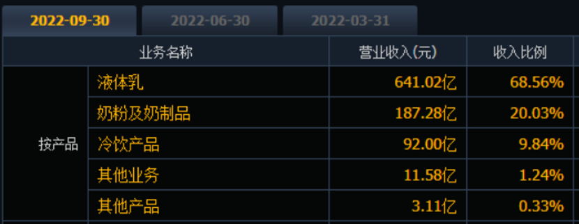 從收入構(gòu)成上看,伊利股份主營業(yè)務(wù)共分為液體乳、奶粉及奶制品、冷飲產(chǎn)品和其他產(chǎn)品四大業(yè)務(wù),2022年上半年收入占比分別為68.5%、20%、9.8%和1.2%。