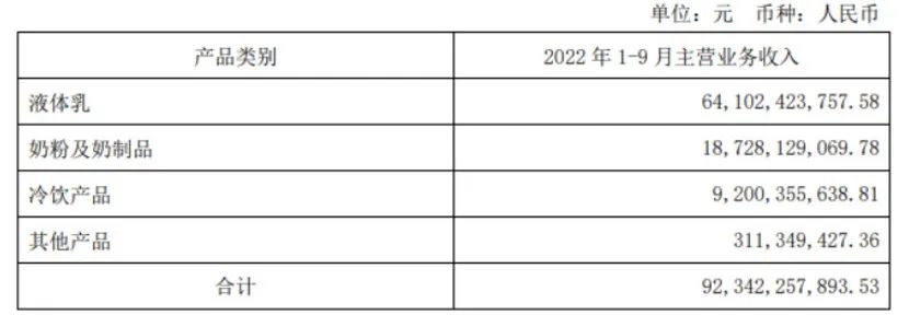 分產(chǎn)品來看,前三季度伊利液體奶、奶粉、冷飲、其他產(chǎn)品(健康飲品)實現(xiàn)營業(yè)收入分別為641.02億元、187.28億元、92.00億元和3.11億元,同比增幅分別為-0.95%、60.50%、32.43%和109.32%。