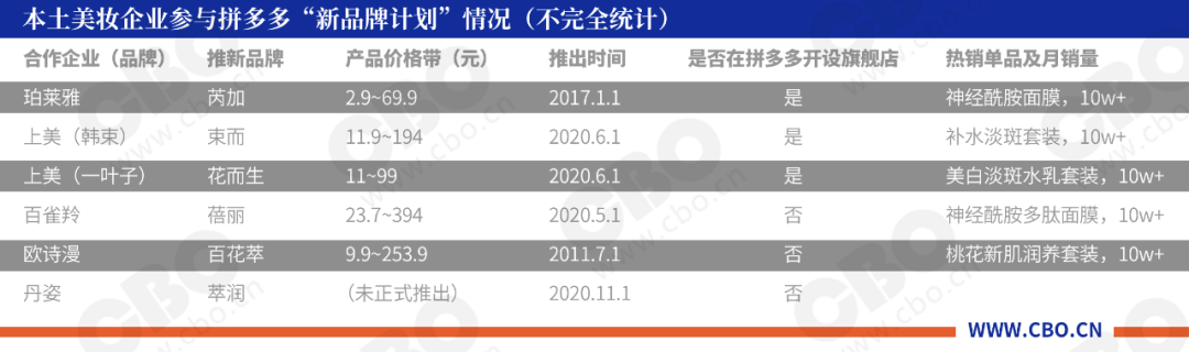 據(jù)CBO記者了解,至2020年底,隨著丹姿入局,并推出品牌“萃潤”,已有五家國內(nèi)龍頭化妝品企業(yè)宣布加入新品牌計(jì)劃,并推出適合在拼多多渠道售賣的品牌。但截至發(fā)稿,記者并未在拼多多、淘寶等電商平臺找到和萃潤有關(guān)的任何產(chǎn)品信息,而其余共創(chuàng)品牌,均在拼多多平臺正常售賣。