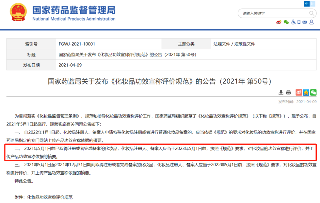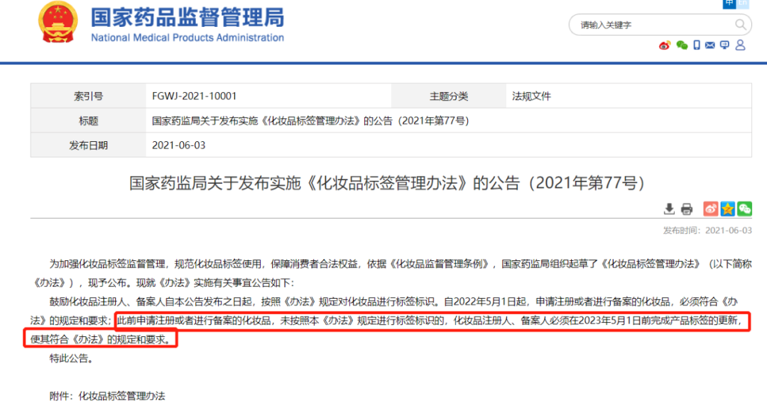 截自《國家藥監(jiān)局關(guān)于實(shí)施<化妝品注冊(cè)備案資料管理規(guī)定>有關(guān)事項(xiàng)的公告》