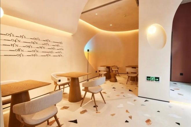 門店整體空間自然、靜溢、藝術(shù),通過(guò)白色和橙棕色的主基調(diào),木色的沙發(fā)和座椅,加上暖色的燈光,溫暖而美好,充滿光明溫度與情懷。