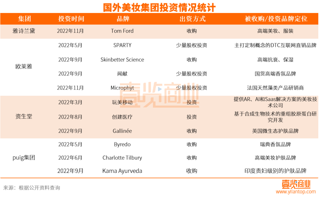除了國(guó)外的美妝集團(tuán)之外,國(guó)內(nèi)美妝集團(tuán)也沒(méi)有落下。水羊股份于今年7月分別收購(gòu)了高端護(hù)膚品牌EDB,還收購(gòu)了小眾輕奢的護(hù)膚品牌PIERAUGE。完美日記也以及于去年收購(gòu)了兩個(gè)高端護(hù)膚品牌法國(guó)科蘭黎和EVE LOM(伊芙蘭)。