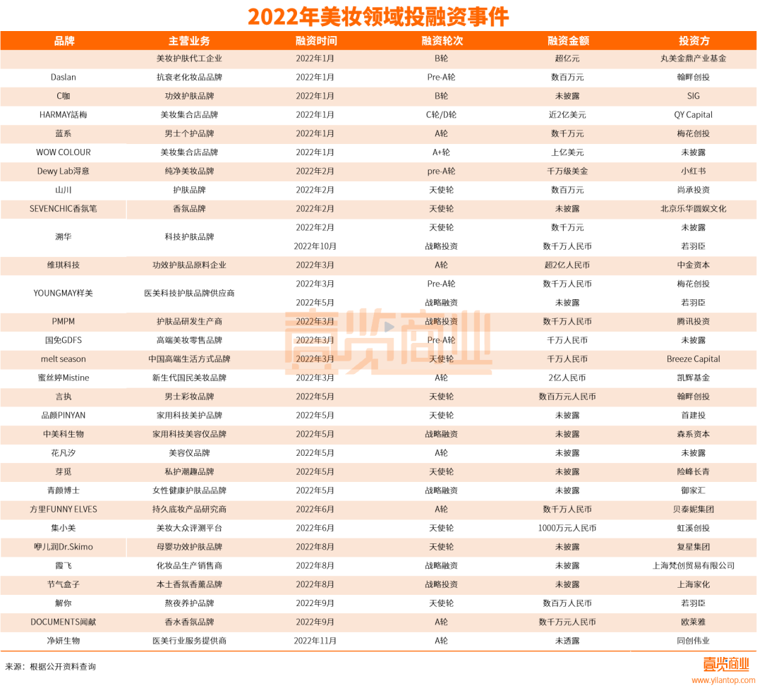 雖然在過(guò)去一年多,消費(fèi)行業(yè)由熱轉(zhuǎn)冷,今年美妝領(lǐng)域的投融資也確實(shí)有所減少。但據(jù)壹覽商業(yè)不完全統(tǒng)計(jì),1-11月,整個(gè)美妝領(lǐng)域仍然發(fā)生了至少32起融資事件,批露融資金額約29.22億元。