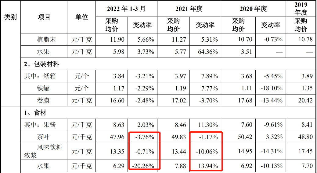 圖:蜜雪冰城貿(mào)易型采購成本,來源:蜜雪冰城招股說明書