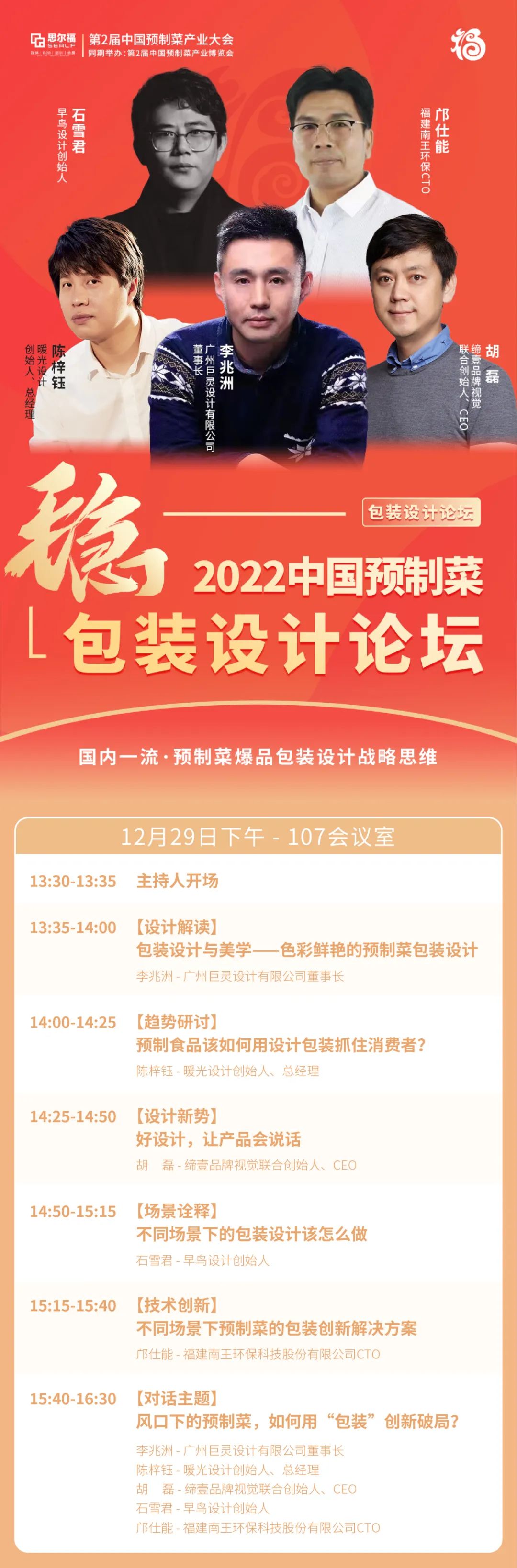 以上嘉賓將從預(yù)制菜包裝當前市場需求與趨勢、技術(shù)創(chuàng)新、品牌營銷、降本增效、設(shè)計語言等展開話題探討,深入探尋預(yù)制菜和包裝設(shè)計行業(yè)的賽道交點,讓包裝設(shè)計成為推動預(yù)制菜產(chǎn)業(yè)轉(zhuǎn)型升級的重要助推力量!