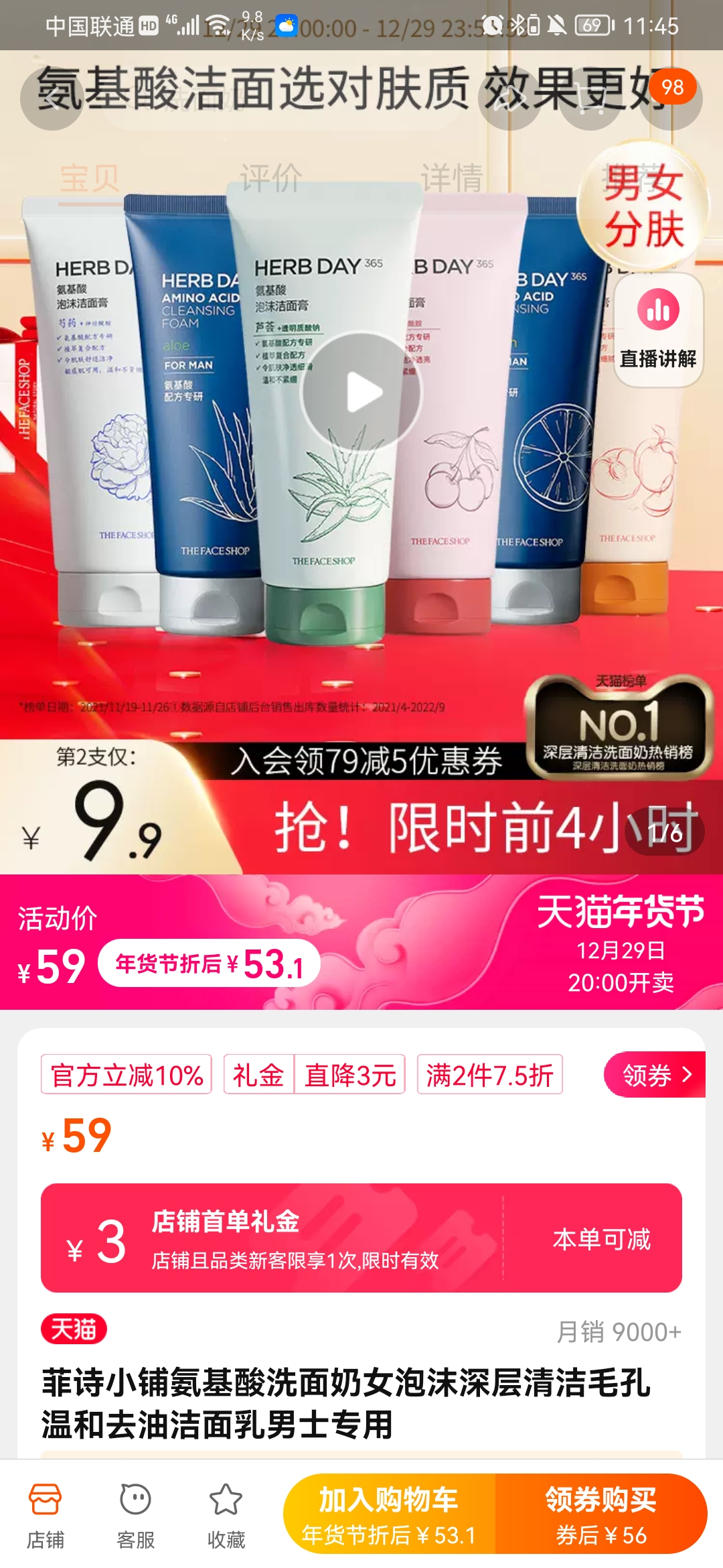 在菲詩(shī)小鋪天貓旗艦店里,目前銷(xiāo)量最高的產(chǎn)品也是氨基酸潔面乳,月銷(xiāo)量達(dá)到了9000件。