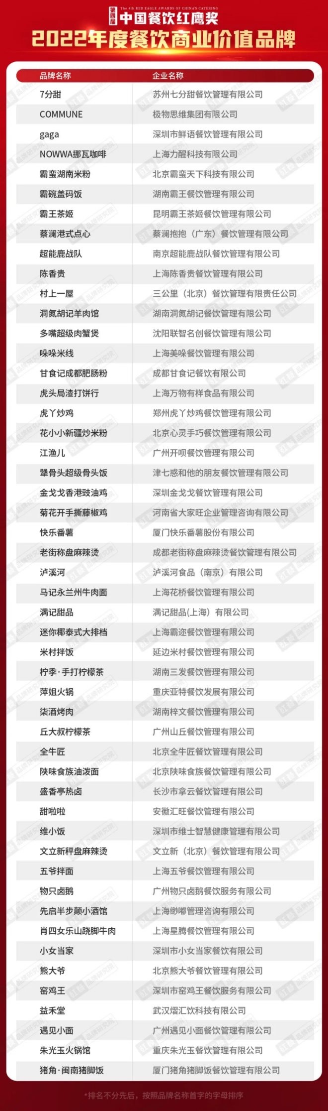 2022年度餐飲商業(yè)價值品牌