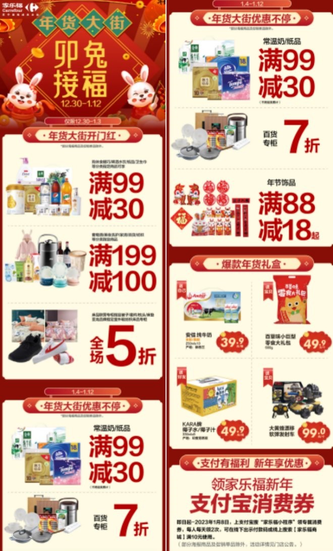 目前,家樂福周邊5公里內(nèi)最快1小時到家業(yè)務已實現(xiàn)全面覆蓋,20公里內(nèi)半日達業(yè)務也已經(jīng)覆蓋多數(shù)家樂福門店所在社區(qū)。春節(jié)前夕,足不出戶也能安心備年貨。
