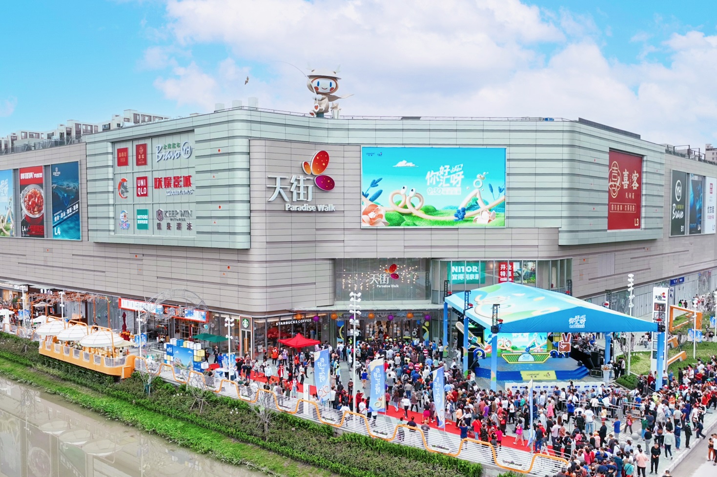 金匯天街打造室外百米長“星夢水游”街區(qū),設(shè)立沿河駁岸裝置和夜間藝術(shù)燈光,成為集觀賞、休閑、體驗(yàn)于一體的沿河景觀。在圣誕新年期間還特別進(jìn)行變裝,打造“冬日飄雪”打卡圣地,吸引周邊年輕客群來此網(wǎng)紅打卡。