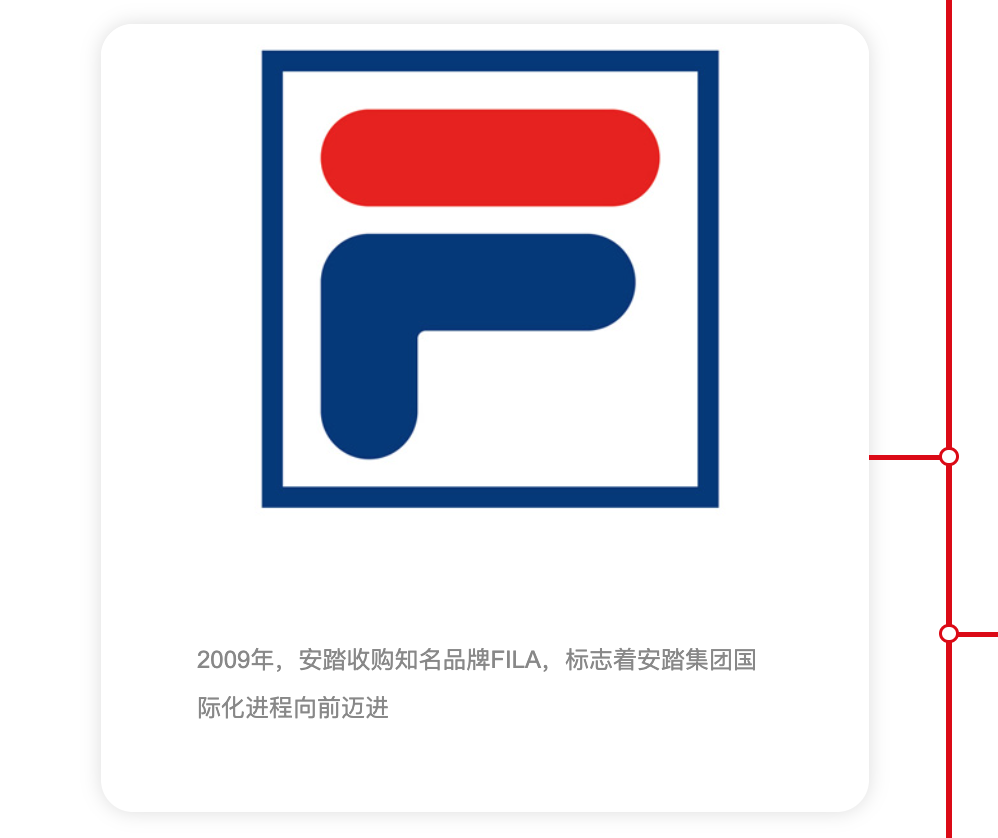 2009年,安踏從百麗國(guó)際手中收購(gòu)FILA在中國(guó)地區(qū)的商標(biāo)使用權(quán)和經(jīng)營(yíng)權(quán),這一舉動(dòng)成為安踏發(fā)展的轉(zhuǎn)折點(diǎn)。