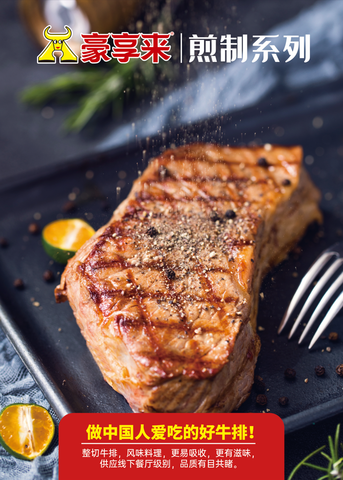 除了牛排類目,豪享來的產(chǎn)品矩陣涵蓋微波速烹食品、中餐冷凍食品、點心速凍食品、罐頭類、常溫類食品等近百種產(chǎn)品,包括好料牛肉、剁椒牛肉、黑椒珍菇牛柳、港式蝦餃皇、紫金醬鳳爪等,在市場上深受廣大消費者歡迎。