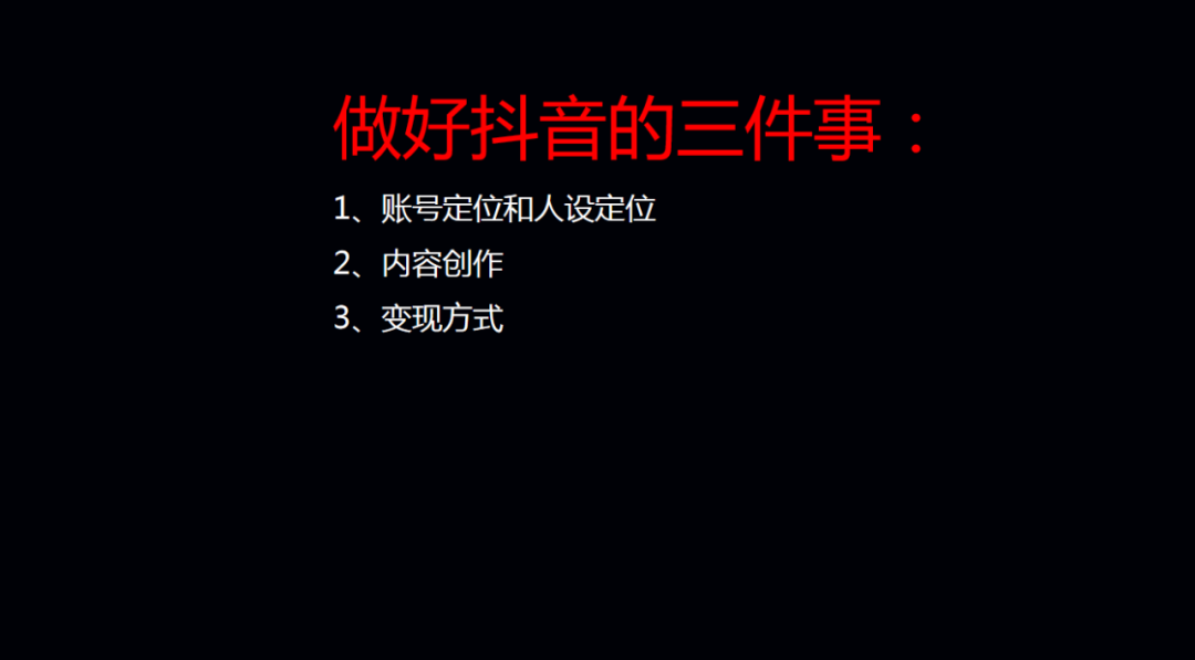 我總結(jié)了做好抖音的三件事兒,第一個(gè)是賬號(hào)的定位和人設(shè)的定位;第二個(gè)是內(nèi)容的創(chuàng)作;第三個(gè)是變現(xiàn)的方式。