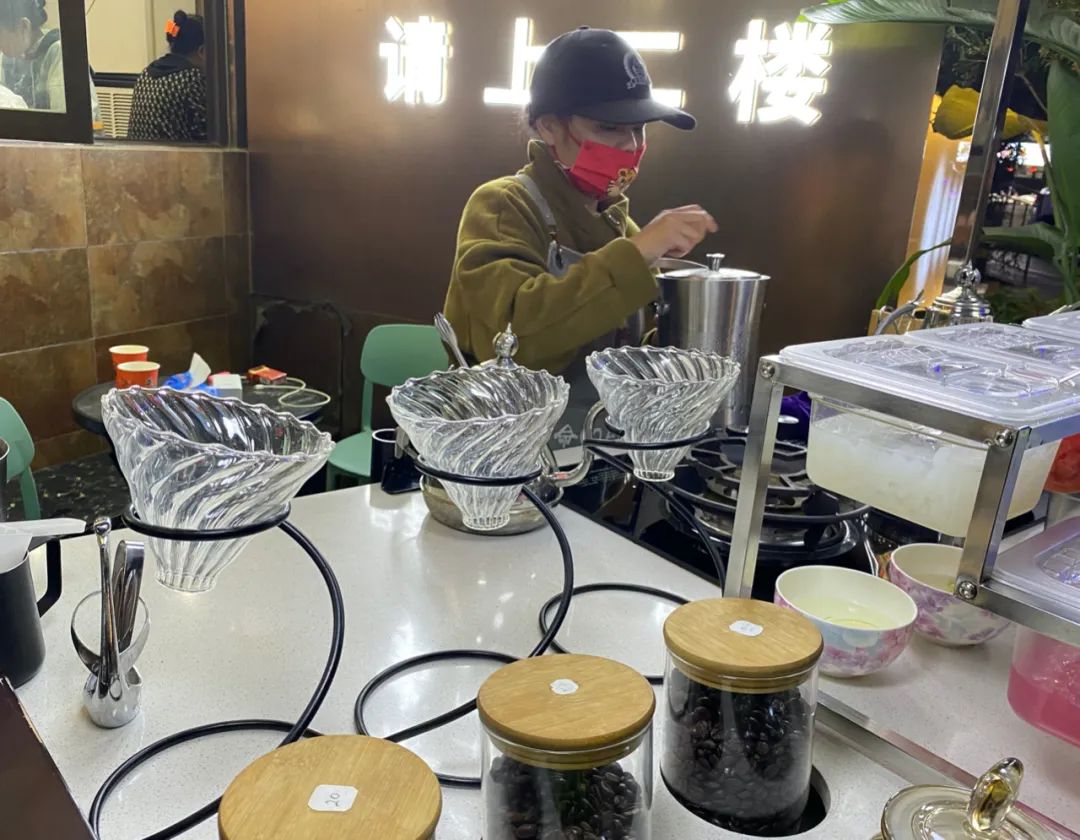 即便在最有“煙火氣”的菜市場,也能聞到咖啡的香氣。