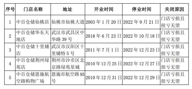 聯(lián)商快訊:近日,中百集團(tuán)發(fā)布公告稱,2022年下半年關(guān)閉了5家倉(cāng)儲(chǔ)大賣場(chǎng)。