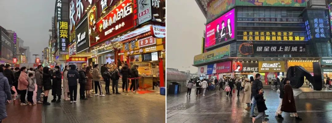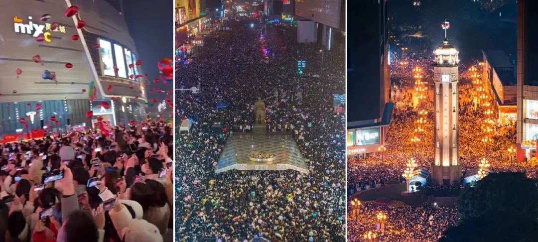 12月31日跨年夜,北京、廣州、西安、長沙等多地商圈人潮擁擠,憋了三年的“陽康”消費者們,在新舊更替之際“炸街”。