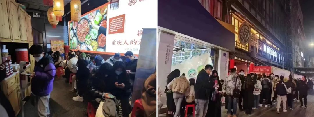 慫重慶火鍋廣州多個門店等位超過300桌,正佳廣場店等位更是高達1299桌;廣州酒家跨年夜外賣金盆的預訂數量超過330份,環(huán)比增長約24%;海底撈廣州北京路店,提前一周便陸續(xù)收到元旦期間的預訂,跨年夜當天門店在下午5點左右就出現排隊現象。