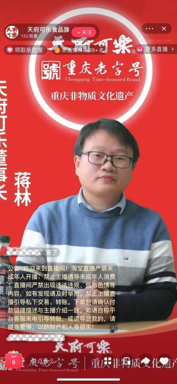 天府可樂董事長蔣林直播帶貨 呼吁支持國貨