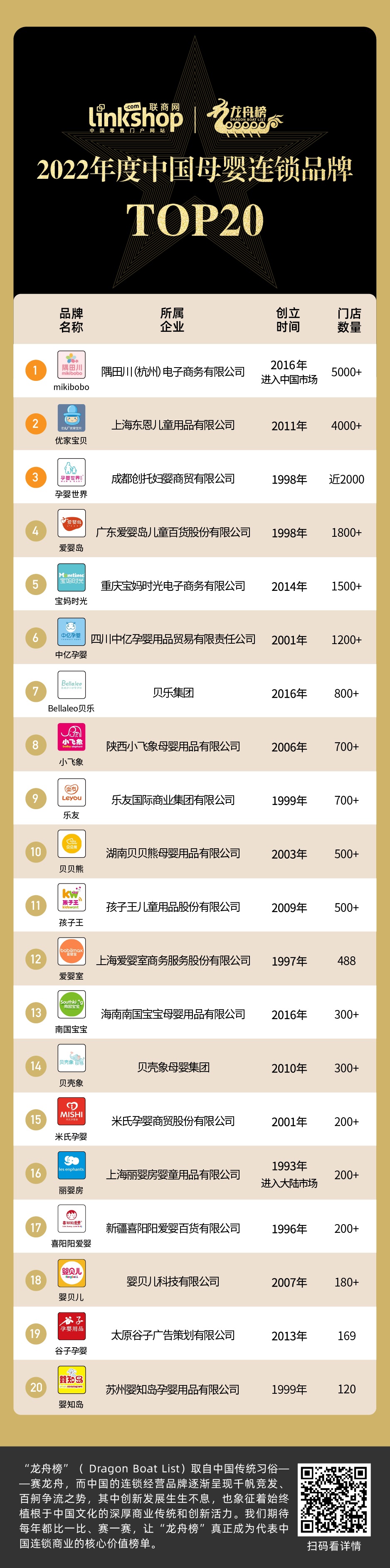 2022年度母嬰用品連鎖品牌TOP20